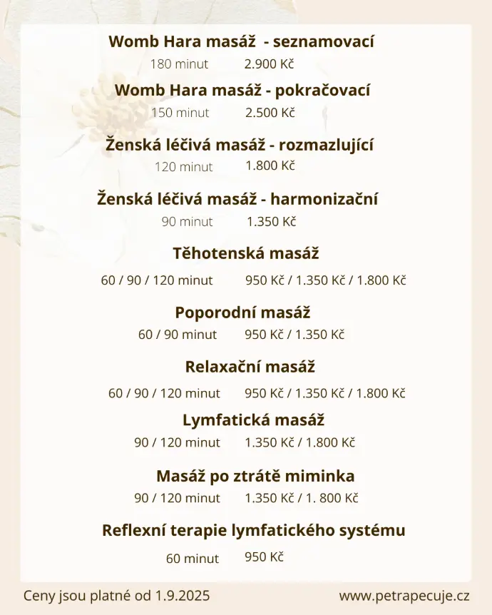 Chtěli byste někomu věnovali mou péči? Na všechny služby vám ráda vám vystavím dárkový poukaz.